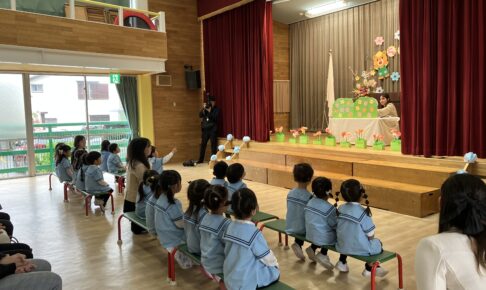 今日、入園式を行いました! 少し緊張しながらも保護者の方と一緒に登園する子どもたちの姿がとても微笑ましかったです! 入園式では、先生の紹介や出し物などを行い、子どもたちも少しずつ笑顔を見せてくれました。 これから様々な経…