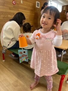 運動遊びの後は、季節の製作「こいのぼり」を親子で一緒に作りました♪